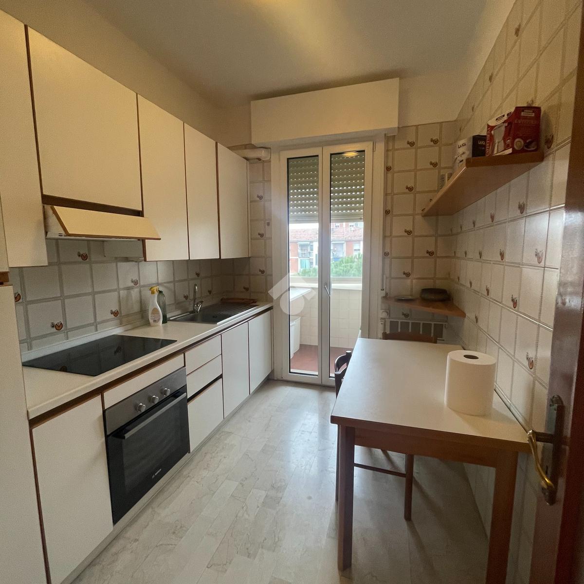 Via della Barca: Proponiamo in affitto qudrilocale al quarto piano con ascensore, l'immobile è così disposto: ingresso su ampia zona giorno, cucina abitabile con accesso al balcone, camera da letto matrimoniale, camera doppia, bagno e ripostiglio, l'immobile è interamente arredato, dotato di aria condizionata, parquet in tutta la casa, infissi in doppio vetro pvc e bagno interamente ristrutturato, a completare la proprietà cantina ciclabile e posto auto condominiale non assegnato. Riscaldamento centralizzato con termo valvole. La zona è molto ben servita, con negozi di prima necessità raggiungibili a piedi ( alimentari, bar, farmacia, supermercati ecc.), inoltre è molto apprezzata per i collegamenti, poichè sotto casa troviamo la fermata dell'autobus (linea 14), che ti permette di raggiungere rapidamente il centro della città.