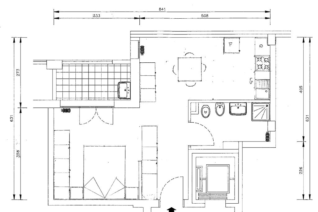 L'appartamento offre un ambiente unico e ben organizzato, ideale per chi cerca una soluzione abitativa pratica e moderna. La disposizione interna è studiata per ottimizzare lo spazio, con una zona giorno luminosa che si integra armoniosamente con l'area notte.