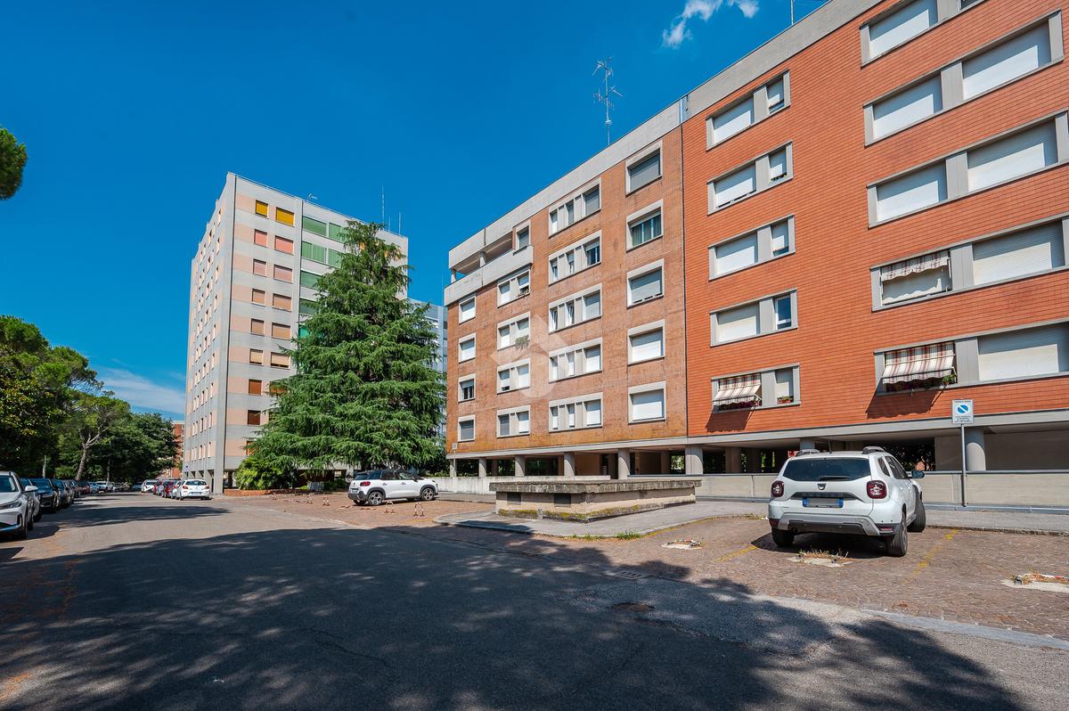 Frontale all'ingresso del palazzo, troviamo un comodo parcheggio per le auto, dove è possibile parcheggiare un veicolo per ogni condomino.
